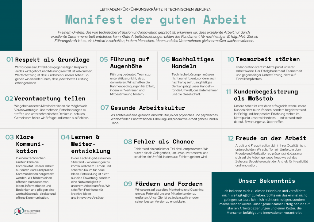 Alle Werte und Prinzipien sind hier so formuliert, dass sie dir deine Führungsarbeit leichter und deinem Team die Zusammenarbeit gelingender machen.
