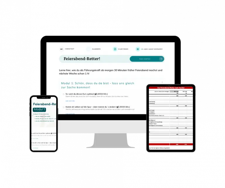 Bist du es leid, ständig länger zu arbeiten, während deine To-Do-Liste nicht kürzer wird und die wirklich wichtigen Dinge auf der Strecke bleiben? Hol dir jetzt den kostenlosen Feierabend-Retter und starte in einen stressfreieren Arbeitstag!